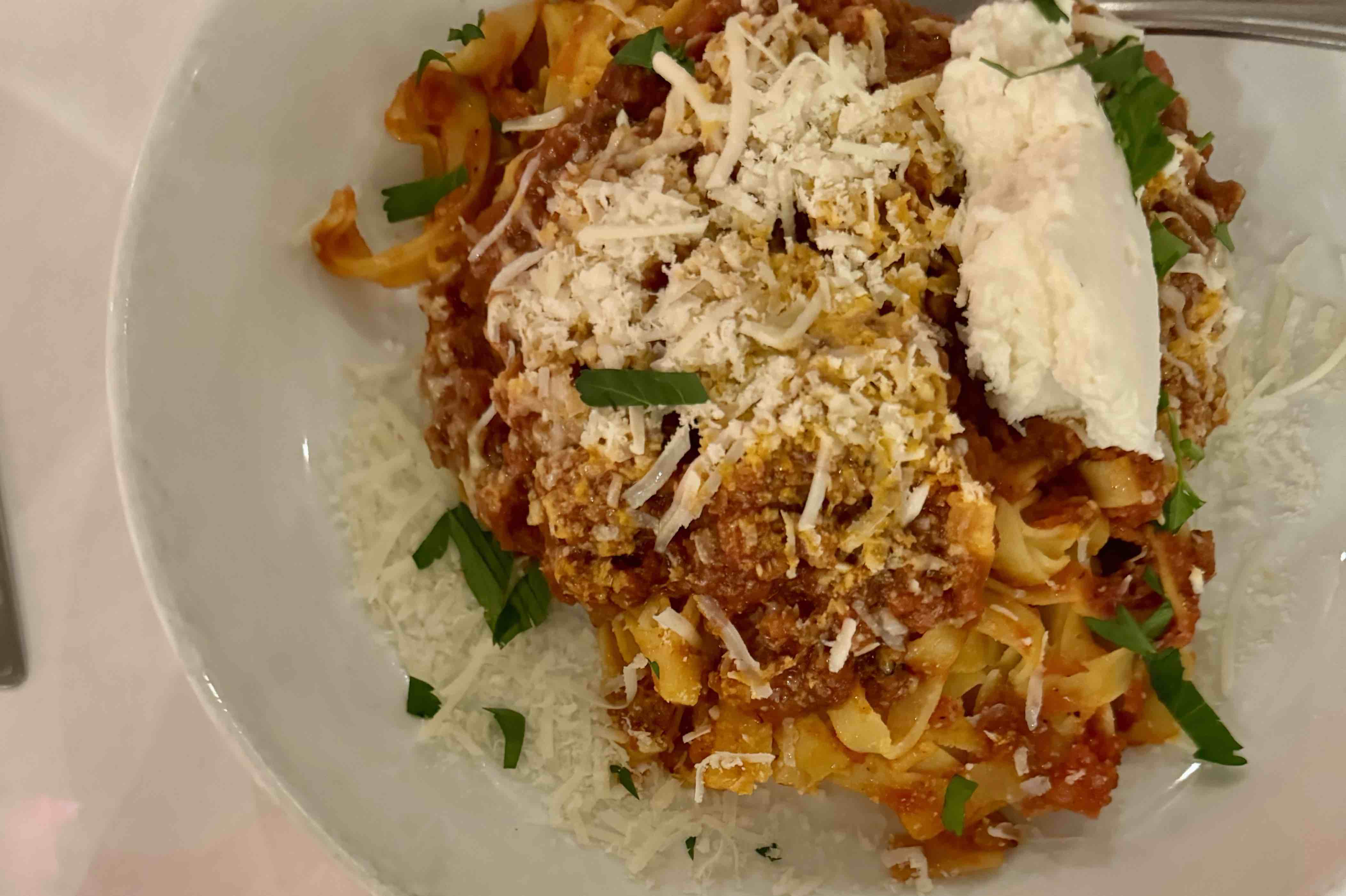 “Ate here with my boyfriend for our 1 year anniversary dinner! I called ahead and when we checked in for our reservation they already had my peanut and gluten allergies listed. We were seated, and when our waitress arrived at our table for drinks, I mentioned my allergies, and she said “Thank you so much for letting me know. The hostess already made me aware that I was serving someone with a severe peanut allergy!” Thought this was so cool! I ordered the spaghetti bolognese with gluten free pasta, and she showed me on the order how she wrote “Severe peanut allergy!!!!! Use separate pans – no cross contact!!!!” in bold letters with lots of exclamation points. Our food was so delicious and safe!”