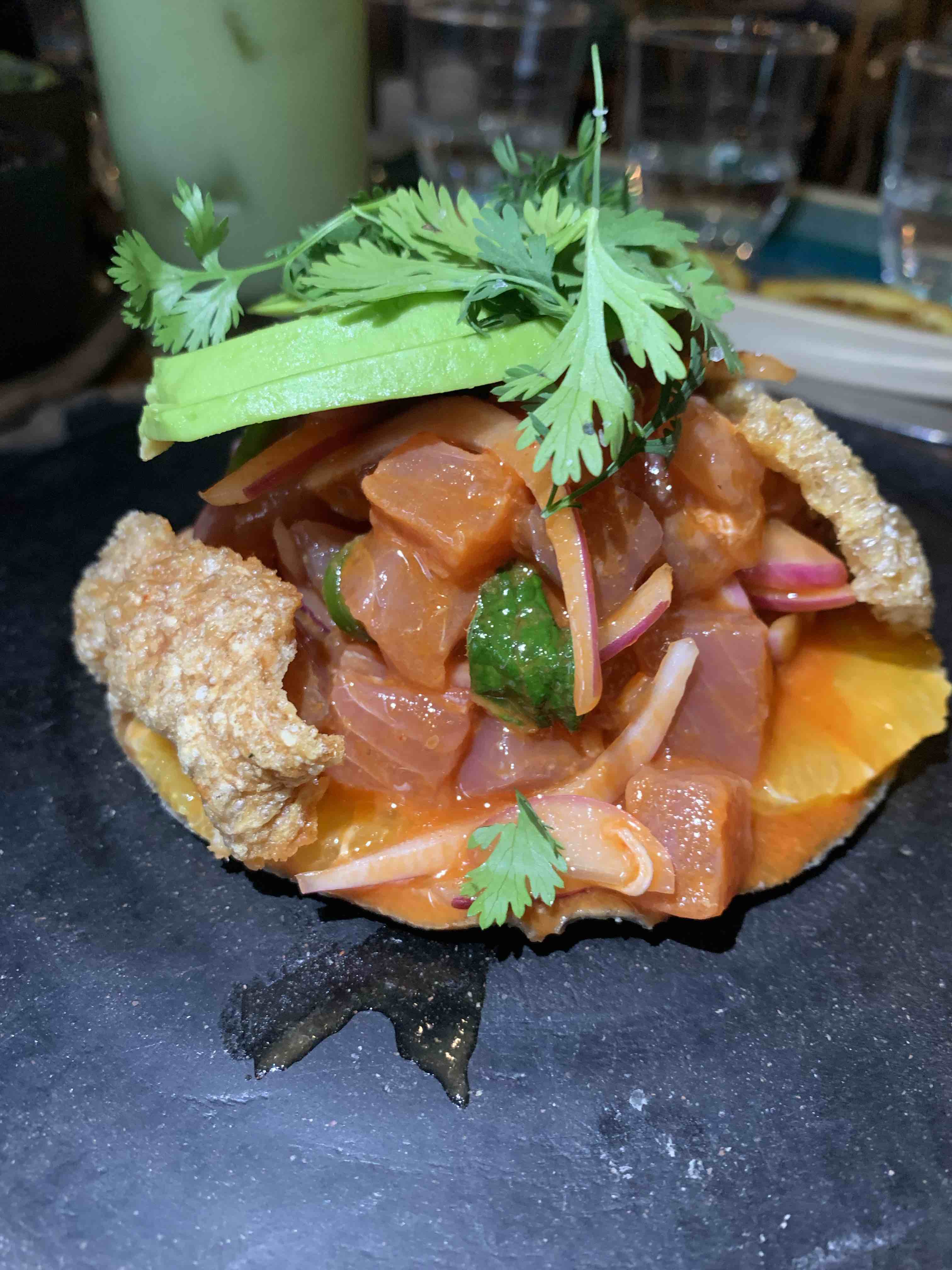 “100% gf Japanese Mexican fusion. Need I say more?! SO delicious!!!! The cocktails are incredible. Definitely go to the London City location if you want a date night vibey spot. Everything is celiac safe so you can relax and eat your heart out. Get the churros for dessert.”
