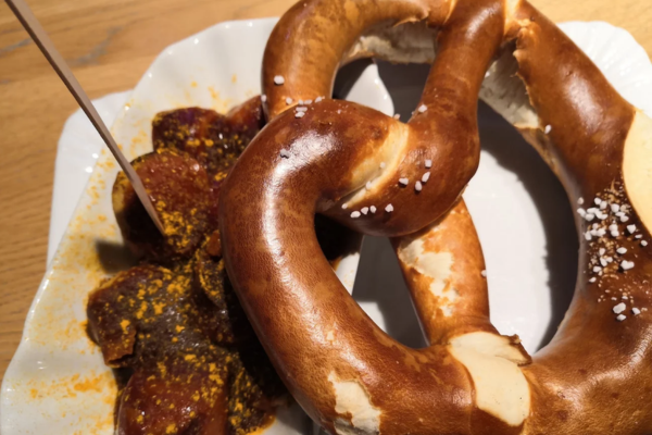 “This was the best German food I had the whole trip! German food seems to not have a lot of nuts, which is great for my allergies. I got a sausage plate and pretzel (that was literally the size of my head) here, and it was so good!”